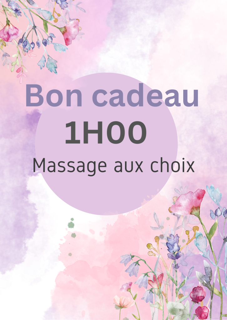Massage au choix 1H00 Vous allez recevoir le chèque cadeau par mail puis vous pourrez l'imprimer afin de l'offrir à la personne de votre choix. **Valable 1 an!**. Réservation uniquement par téléphone au +33781085918