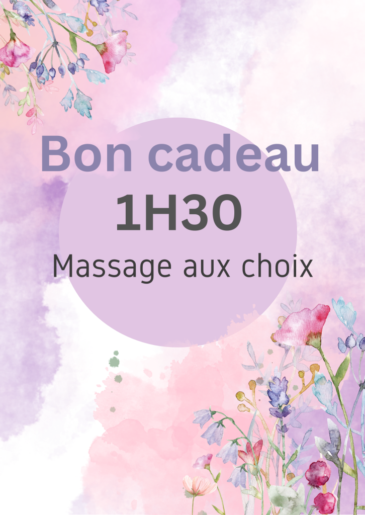 Massage au choix 1H30 Vous allez recevoir le chèque cadeau par mail puis vous pourrez l'imprimer afin de l'offrir à la personne de votre choix. **Valable 1 an!**. Réservation uniquement par téléphone au +33781085918