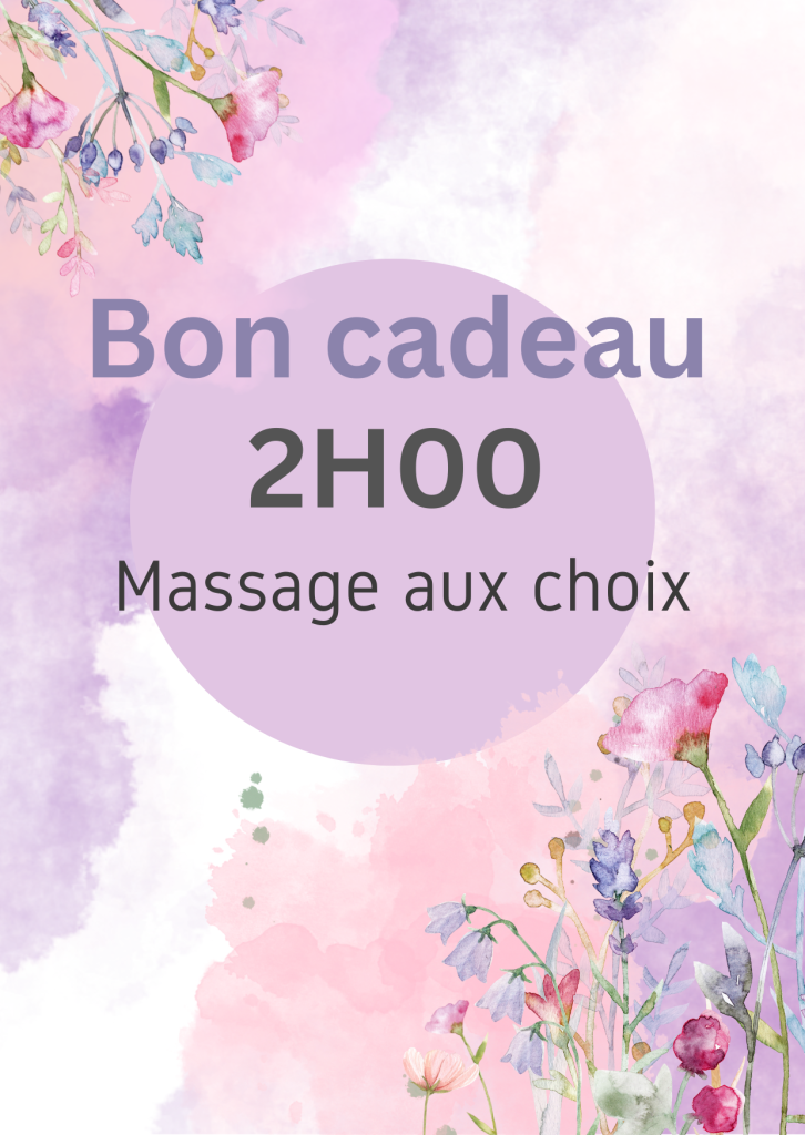 Massage au choix 2H00 Vous allez recevoir le chèque cadeau par mail puis vous pourrez l'imprimer afin de l'offrir à la personne de votre choix. **Valable 1 an!**. Réservation uniquement par téléphone au +33781085918